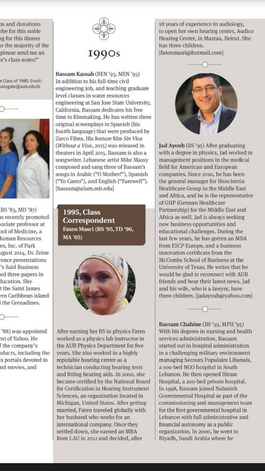 The audiologist at Audico hearing center,Faten Masri, in AUB Maingate Magazine, 2015